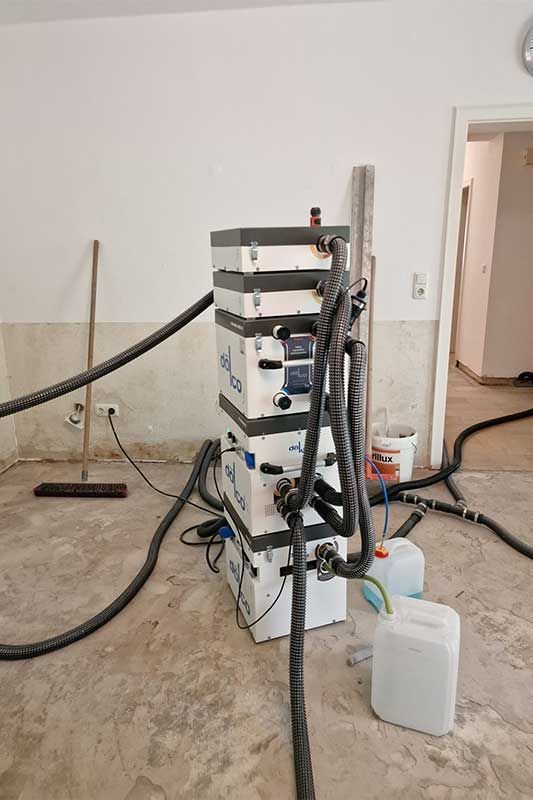 Mit unserer langjährigen Erfahrung erkennen wir kritische Feuchtigkeitsquellen frühzeitig und sorgen dafür, dass Ihr Bauprojekt planmäßig fortgesetzt werden kann. Durch den gezielten Einsatz leistungsstarker Geräte wie Kondensationstrocknern, Adsorptionstrocknern oder Lüftungssystemen verhindern wir Schimmelbildung und Schäden an der Bausubstanz.